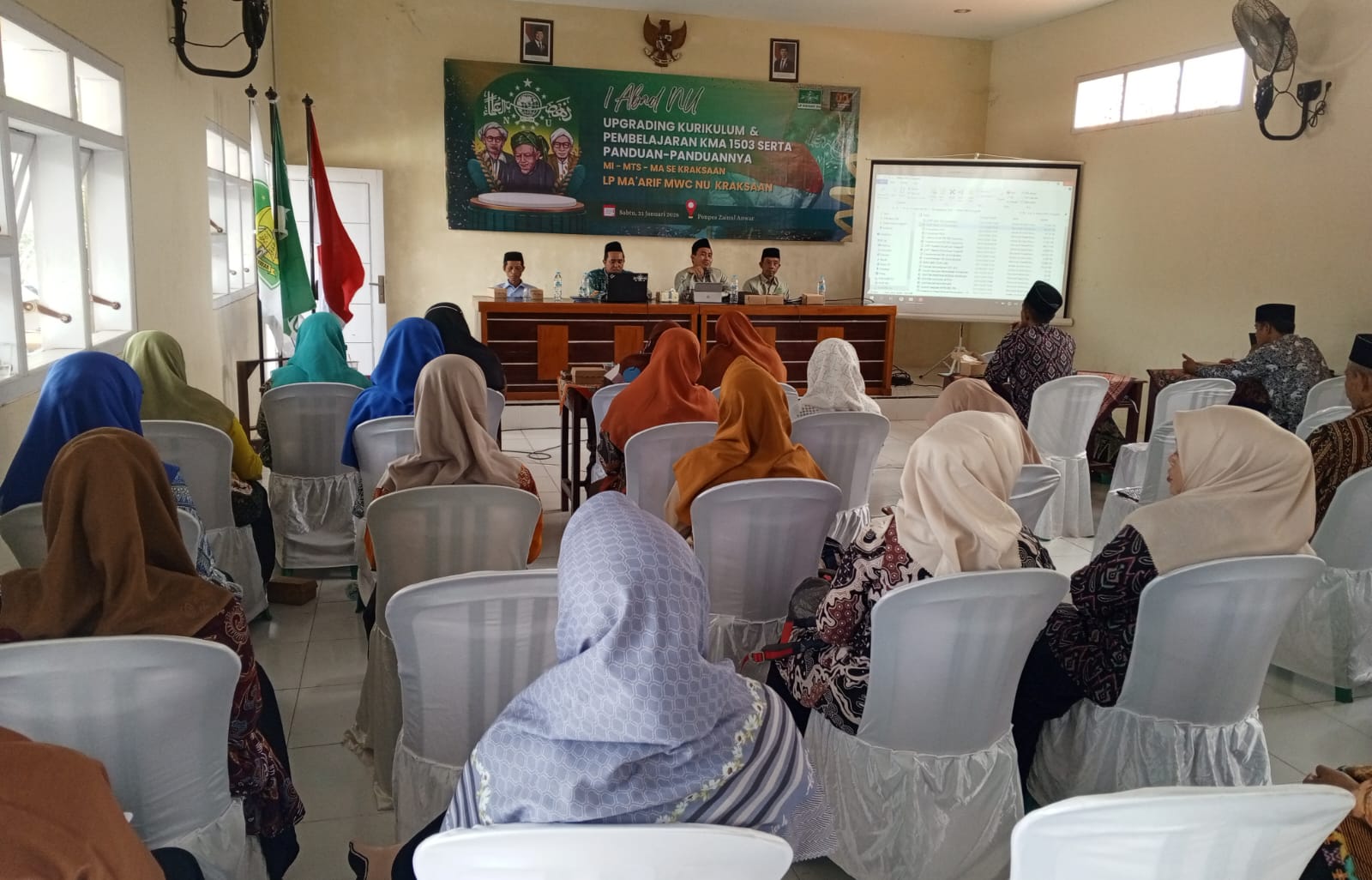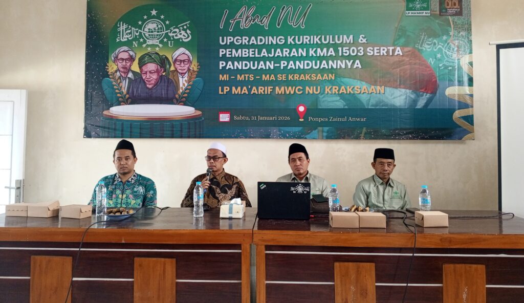 Kraksaan, mwcnukraksaan.or.id – Lembaga Pendidikan (LP) Ma’arif MWCNU Kraksaan menggelar kegiatan Upgrading Kurikulum dan Pembelajaran KMA 1503 beserta panduan-panduannya pada Sabtu (31/1/2026). Kegiatan ini dilaksanakan di Auditorium Pondok Pesantren Zainul Anwar, Desa Alassumur Kulon, Kecamatan Kraksaan, Kabupaten Probolinggo. Kegiatan upgrading ini diselenggarakan dalam rangka memperingati Harlah satu abad Nahdlatul Ulama. Seluruh Kepala Sekolah dan Wakil Kepala Sekolah bidang kurikulum jenjang MI, MTs, dan MA se-Kecamatan Kraksaan turut dilibatkan dalam kegiatan tersebut. LP Ma’arif MWCNU Kraksaan menghadirkan Dr. Ahmad Zamroni, SS., M.Pd, Kepala MAN 2 Probolinggo yang juga Wakil Ketua LP Ma’arif PCNU Kraksaan, sebagai pemateri utama. Materi difokuskan pada penguatan pemahaman Kurikulum KMA 1503 serta implementasinya dalam proses pembelajaran di madrasah Ma’arif. Pengasuh Pondok Pesantren Zainul Anwar, KH. Hasan Assyadzili Abdullah, dalam sambutannya menyampaikan rasa terima kasih dan dukungan penuh atas terselenggaranya kegiatan tersebut di pesantren yang dipimpinnya. Ia menyebut, Pesantren Zainul Anwar yang berdiri sejak tahun 1964 selalu terbuka untuk kegiatan-kegiatan penguatan pendidikan dan keilmuan. Lebih lanjut, KH. Hasan Assyadzili Abdullah menekankan pentingnya penguasaan ilmu agama yang seimbang dengan ilmu-ilmu lain. Menurutnya, keseimbangan tersebut menjadi bekal penting bagi generasi muda dalam menghadapi tantangan zaman tanpa kehilangan identitas keislaman dan ke-NU-an. Sementara itu, Sekretaris LP Ma’arif PCNU Kraksaan, Kholid Musthofa, M.Pd, dalam sambutannya menyampaikan bahwa LP Ma’arif MWCNU Kraksaan termasuk salah satu yang paling aktif dalam kegiatan peningkatan mutu pendidikan. Ia menyebutkan, di awal tahun 2026 saja sudah dua kali kegiatan dilaksanakan dengan menghadirkan jajaran LP Ma’arif PCNU Kraksaan. “Ini menunjukkan semangat luar biasa dari LP Ma’arif MWCNU Kraksaan dalam meningkatkan kualitas pendidikan Ma’arif, khususnya di bidang kurikulum dan pembelajaran,” ujarnya. Dalam sesi penyampaian materi lain,Muh Zuhdi Hasan, M.Pd menyoroti pentingnya kurikulum yang responsif terhadap perkembangan zaman. Ia menegaskan bahwa sekolah yang baik pasti memiliki kurikulum yang baik pula. Namun realitanya, saat ini kurikulum sering kali hanya dijadikan sebagai syarat administratif, belum sepenuhnya dihidupkan dalam praktik pembelajaran. Sementara itu, pemateri utama Dr. Ahmad Zamroni, SS., M.Pd mengawali materinya dengan menegaskan bahwa ruh pembelajaran sejatinya adalah kurikulum. Ia mengajak para kepala sekolah dan wakil kepala sekolah bidang kurikulum untuk tidak hanya memahami dokumen kurikulum secara tekstual, tetapi mampu mengimplementasikannya secara kontekstual sesuai karakter peserta didik dan satuan pendidikan. Penulis: Alfin Maulana Haz Post navigation LP Ma’arif MWCNU Kraksaan Sosialisasikan UAMNU dan Akreditasi Madrasah